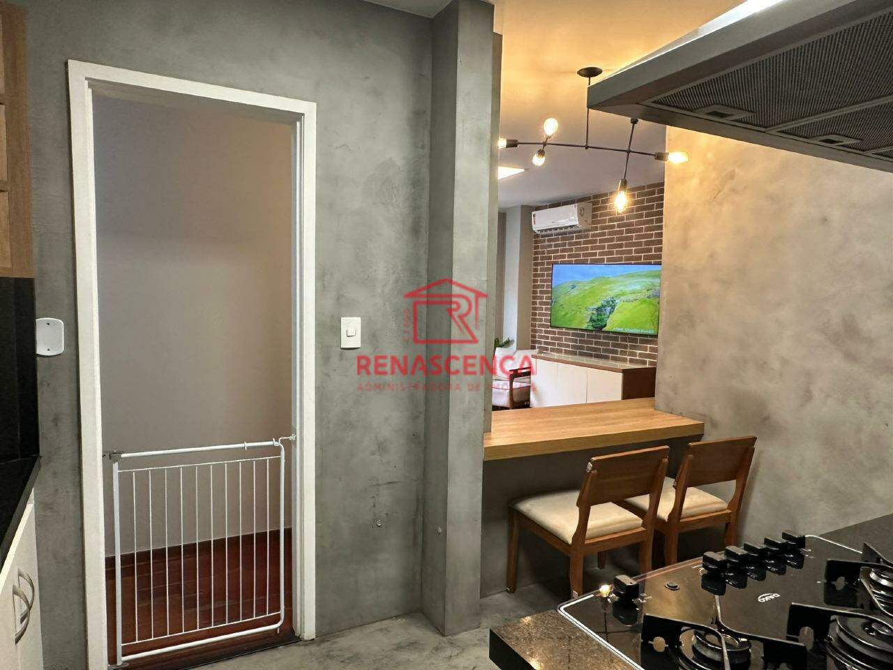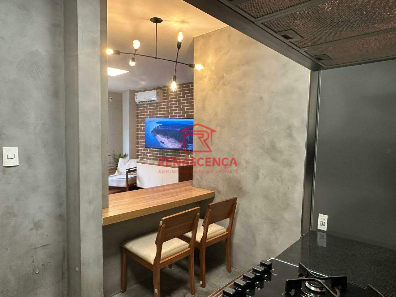 Ao entrar, você é recebido por uma porta com fechadura eletrônica, garantindo mais segurança e praticidade no dia a dia. A cozinha americana é integrada à área de serviço, e planejada para otimizar o espaço com elegância. A sala conta com janela antirruído, ar-condicionado split e televisão de 55 polegadas, criando um ambiente perfeito para relaxar com conforto e silêncio.