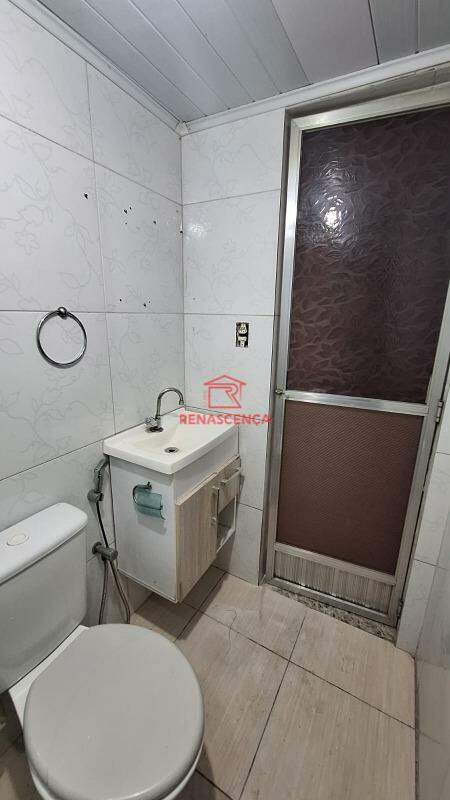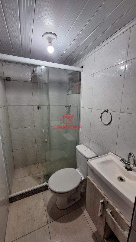 Possui um banheiro com box blindex e chuveiro elétrico, além de armários.