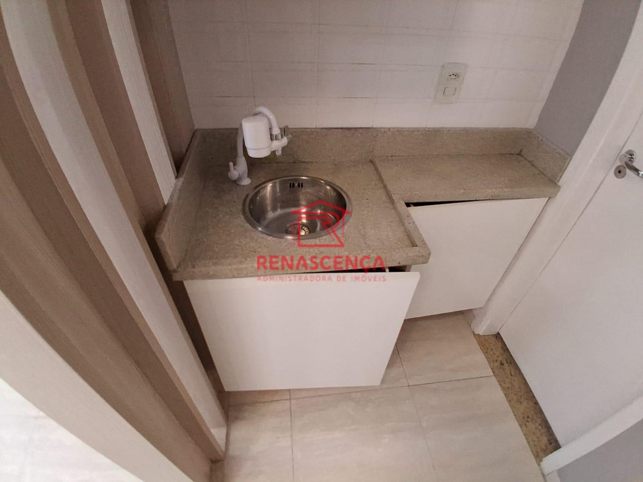 Possui ar split, além de uma pia auxiliar com bancada e armários.